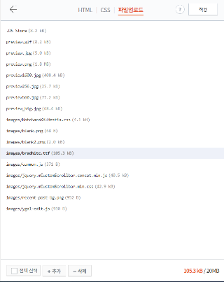 먼저 찾아놓은 폰트 파일(ttf 등)을 파일업로드를 통해 티스토리에 업로드한다.