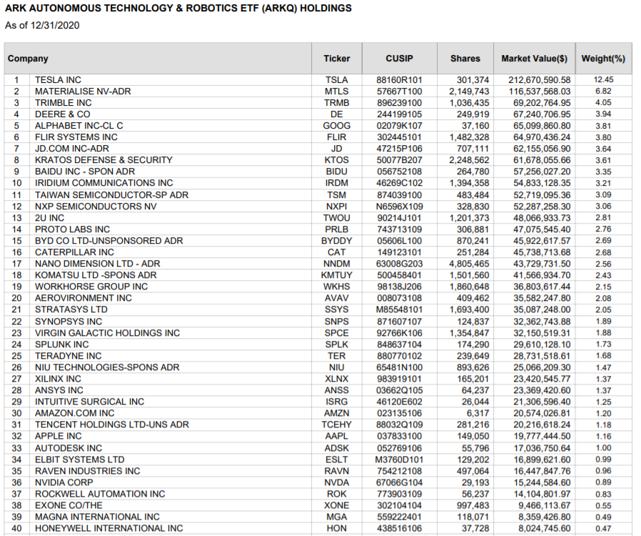 Autonomous Tech. & Robotics(ARKQ) : 로봇과 자동화 기술에 중점으로 투자하는 ETF