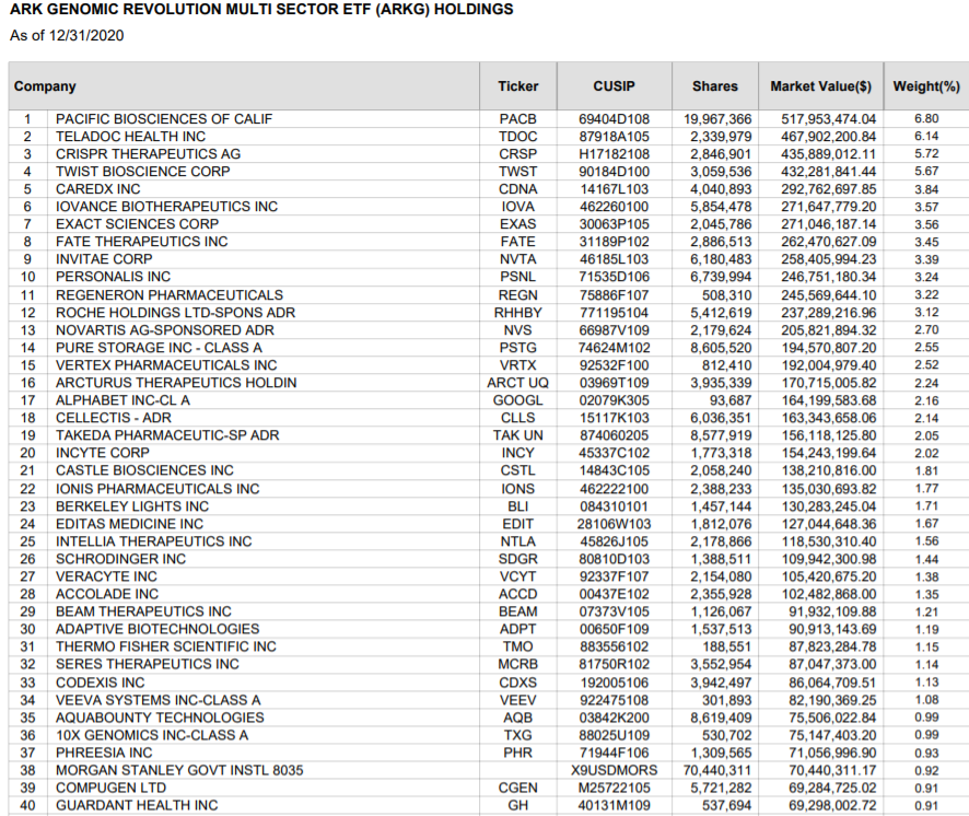 Genomic Revolution(ARKG) : 바이오관련으로 중점 투자하는 ETF