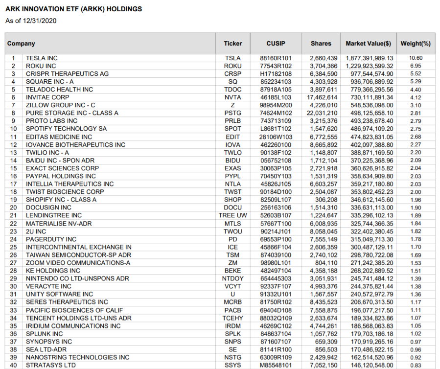 ARK innovation(ARKK) : 아크 인베스트먼트의 지수추종 ETF 같은 느낌으로 종합선물세트라고 보면 된다.