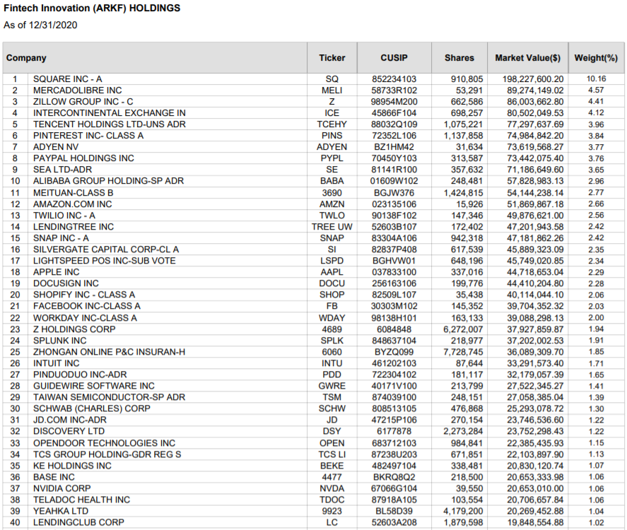 Fintech Innovation ETF(ARKF) : 핀테크관련으로 중점 투자하는 ETF