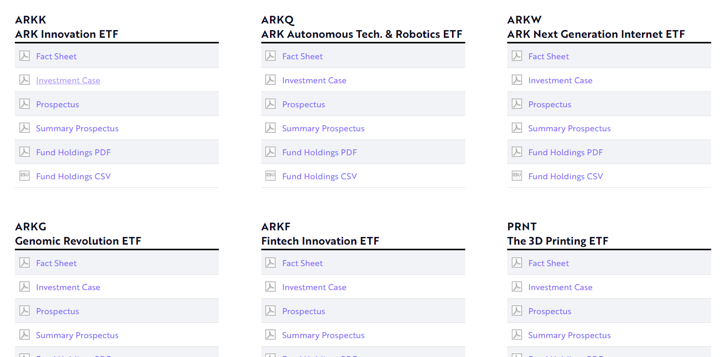 ARK홈페이지에서 -> Invertor REsources -> Downloads로 들어간다.