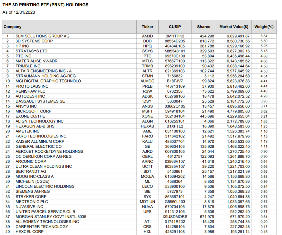 The 3D Printing ETF(PRNT) : 3D프린팅에 중점을 둔 ETF