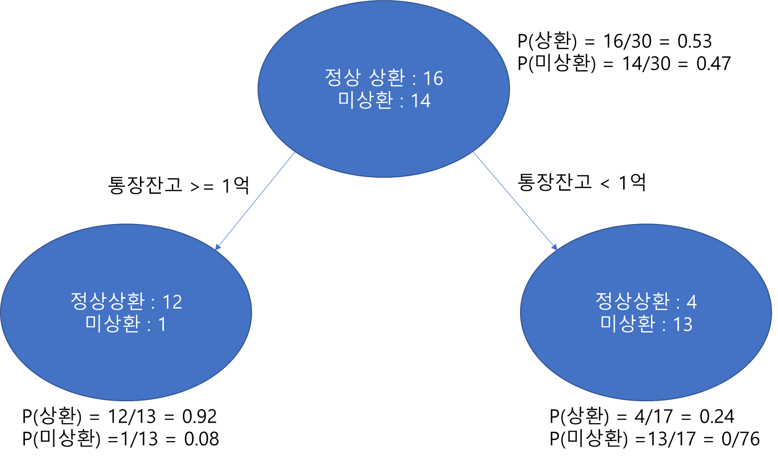 - 예시 ) 전체 고객 10명 중 정상 상환 고객이 7명이고, 미상환 고객이 3명이다.