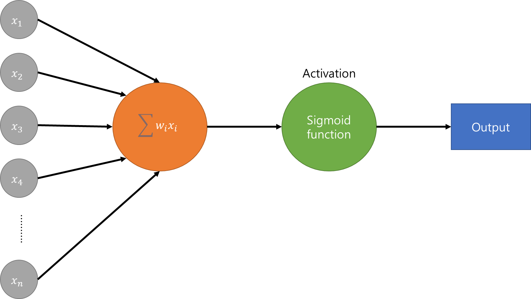 o 흔히들 가장 기본적으로 쓰는 함수는 sigmoid 함수이다. 아웃풋이 무한대에서 가능하기 떄문이다.
