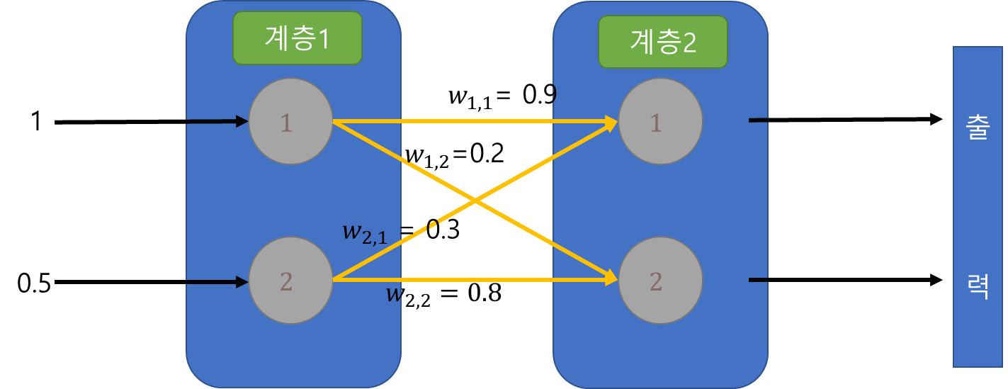 o 가중치의 표현은 다음 그림과 같이 할 수 있다.