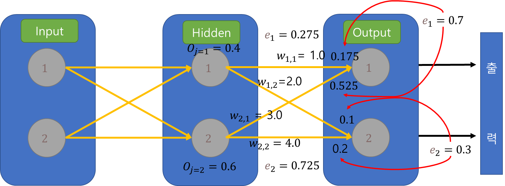 (tk - Ok) 는 오차 e1이다. e1는 0.7