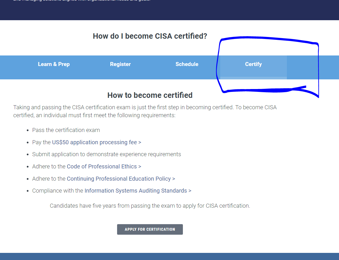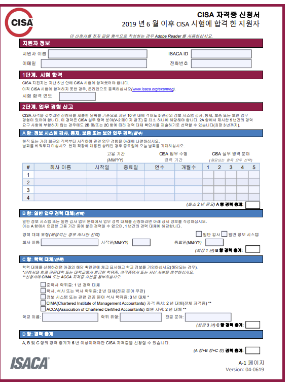 그려면 SUBMIT YOUR APPLICATION FOR REVIEW가 뜨는데, 여기서 CISA를 입력하고,
