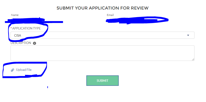 그려면 SUBMIT YOUR APPLICATION FOR REVIEW가 뜨는데, 여기서 CISA를 입력하고,