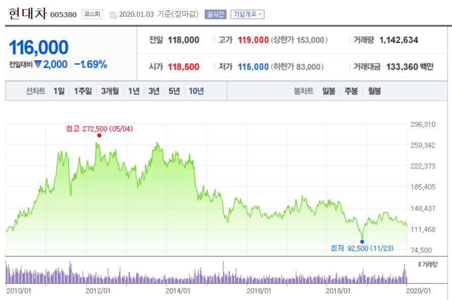 포스코, 현대차도 대형주인데 장투했을때 손해가 막심하다.
