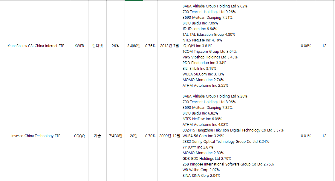 하지만 나는 기술관련한 ETF에 관심이 있기때문에 CQQQ와 KWEB을 추가하였다.