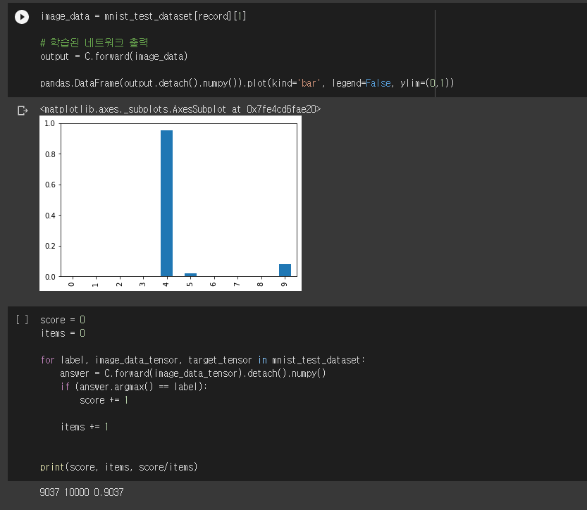 0 ~ 9 까지 총 10개의 출력 노드에 각각 결과 값 할당